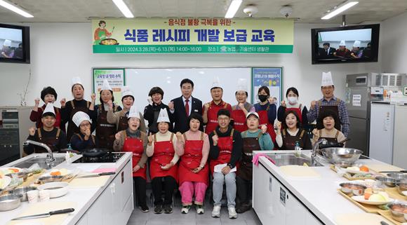교육장을 찾은 이응우 시장은 “이번 교육을 통해 레시피 개발 및 전문가의 Know-how를 전수받아 영업이익을 극대화하는 계기가 되길 바란다”고 말했다.