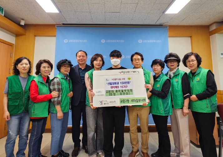 이날 전달된 신발교환권은 교문2동 새마을부녀회가 지난 4월 18일 새마을 봄 바자회를 개최하여 마련한 이웃돕기 기금으로 준비한 것이다. 교문2동 행정복지센터는 10만 원 상당의 신발 교환권을 관내 저소득 청소년 15명에 전달할 예정이다.