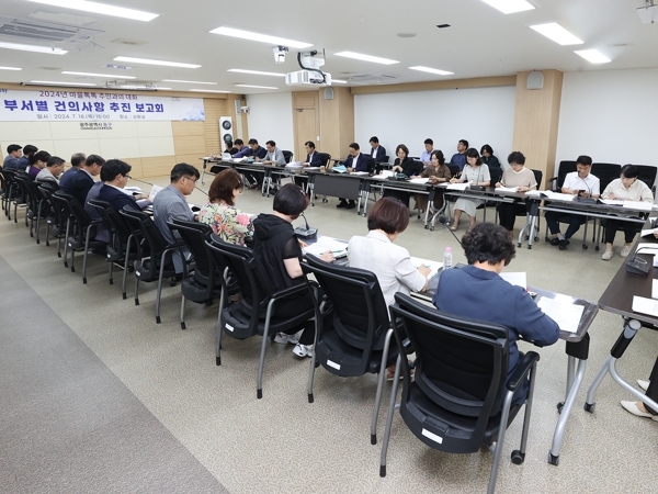 동구는 최근 주민과의 대화 건의사항 추진 보고회를 열고, 지난 5월 2일부터 지난달 21일까지 관내 13개 동을 순회하며 수렴한 건의·애로사항에 대해 사업 부서별로 해결 방안을 논의하는 시간을 가졌다.
