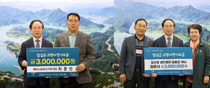 심 민 군수는“임실과 맺은 소중한 인연을 잊지 않고 고향 사랑의 마음을 전해주셔서 감사드린다”며“기부금이 군민 복리 증진 향상과 지역발전에 사용될 수 있도록 전력을 다하겠다”고 말했다.