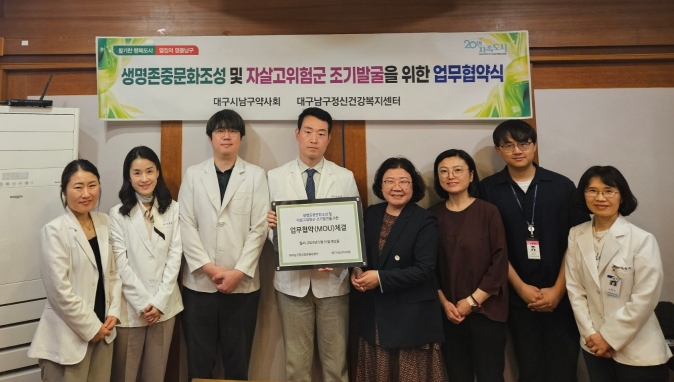 [뉴스서울] 대구 남구는 지난 5월 생명존중 안심마을 조성을 위해 남구약사회와 업무 협약을 체결하고 관내 34곳 약국을 ‘생명존중 안심약국’으로 지정했다고 밝혔다.