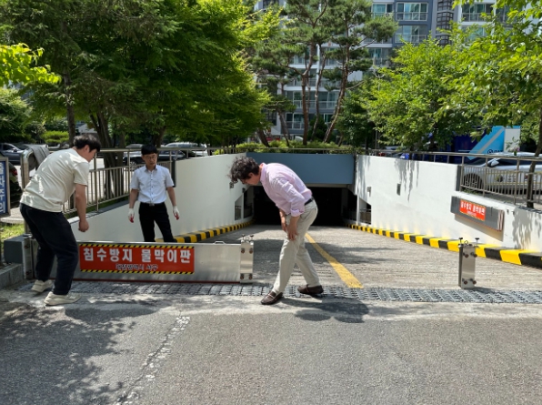 주요 점검 내용은 ▲지하주차장 입구에 설치한 차수판 유지관리 실태와 차수판 사용 방법, 침수 시 비상대응체계 등 ▲축대, 옹벽 구조물 균열 및 배수 상태 등이다.