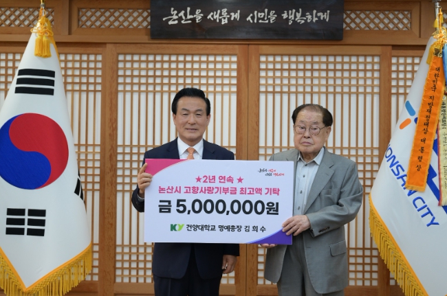 ▲ 논산 고향사랑 1호’ 김희수 총장, 2년 연속 최고액 500만 원 기부 |