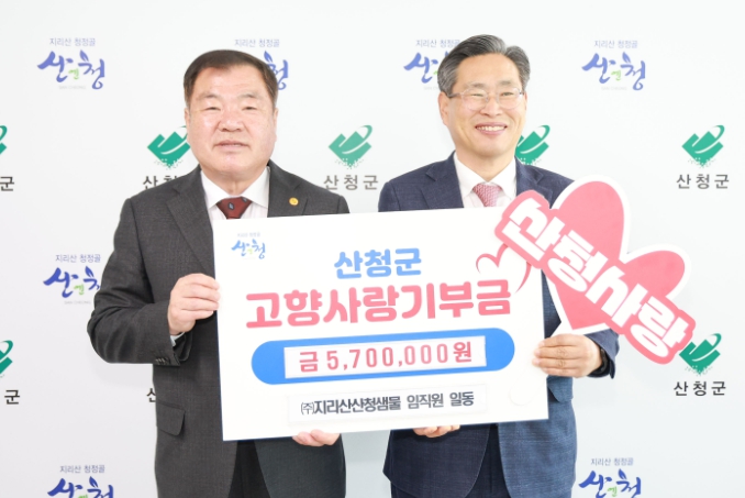 [뉴스서울] 산청군은 ㈜지리산산청샘물(대표 최낙준)이 지난해에 이어 올해에도 산청군고향사랑기부제에 동참하며 570만원을 기탁했다고 22일 밝혔다.