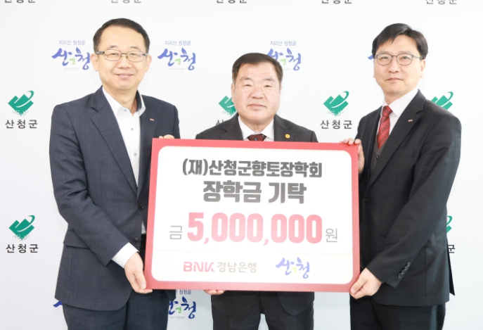 [뉴스서울] 산청군은 BNK경남은행 산청지점(지점장 황철완)이 향토장학금 500만원을 기탁했다고 22일 밝혔다.
