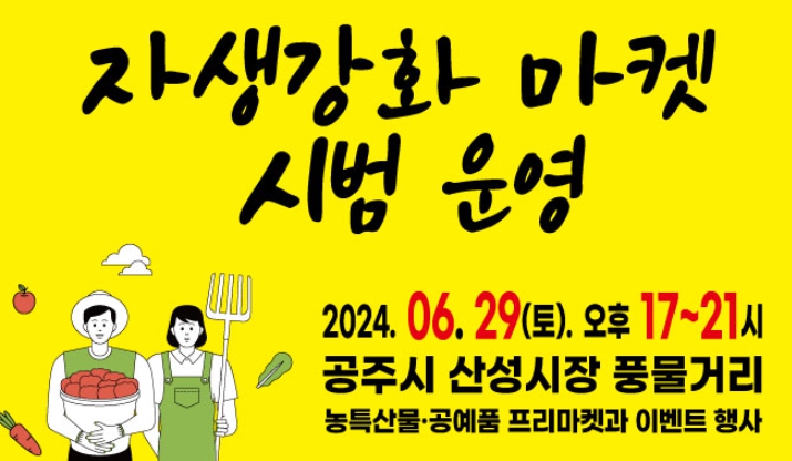 [뉴스서울] 공주시는 오는 29일 산성시장 풍물거리에서 지역 소농인과 소상공인이 참여하는 프리마켓인 ‘자생강화마켓’을 시범 운영한다고 밝혔다.