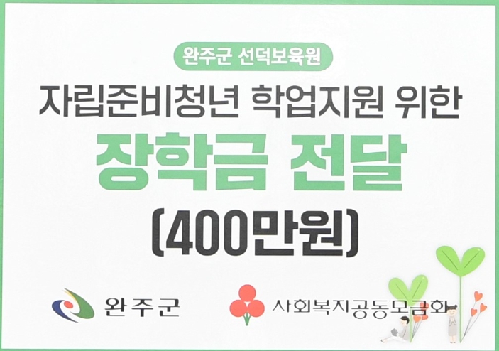 [뉴스서울] 완주군이 지난 19일, 자립준비청년 4명에게 학업지원을 위한 장학금 400만 원을 전달했다.