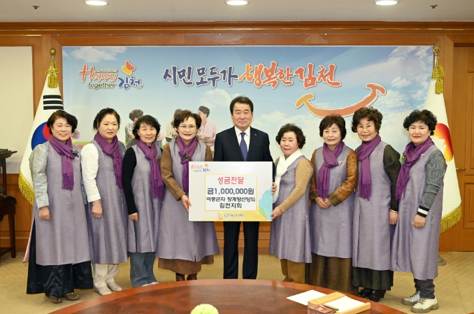 [뉴스서울] 여중군자 장계향선양회 김천지회는 3월 19일 어려운 이웃을 도와주고 희망과 나눔이 있는 김천시를 만들기 위해 김천복지재단에 성금 100만 원을 전달했다.