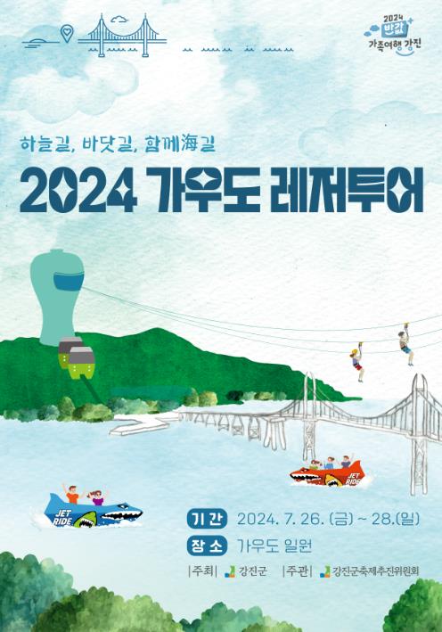 [뉴스서울] 강진군은 7월 26일부터 28일까지 가우도 일원에서 개최되는 ‘2024 가우도 레저투어’ 행사를 맞이해 제트보트와 짚트랙 등 파격적인 할인 이벤트를 실시한다.