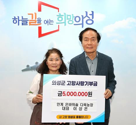 [뉴스서울] 의성군은18일 이상은 안계 은바위솔 다육농장대표가 고향사랑기부금 개인최고액인 500만원을 의성군에 기탁했다고 밝혔다.