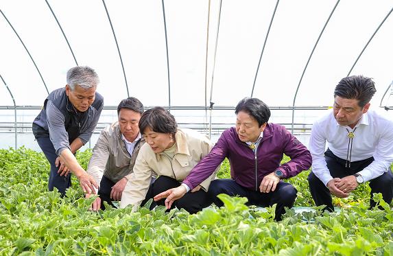 이번 방문은 본격적인 참외 출하가 시작됨에 따라 현장의 생생한 참외 작황을 점검하고 수급 안정을 위한 생육관리 및 출하 확대를 당부하기 위해 이루어졌다.