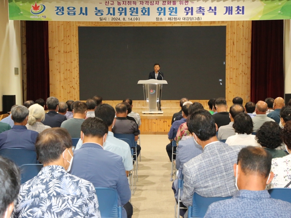 [뉴스서울] 정읍시는 농지 부동산 투기 방지를 목적으로 16개 읍·면·동에 농지위원회를 재선정·구성하고, 지난 14일 농업기술센터 3층 대강당에서 위촉식을 개최했다.