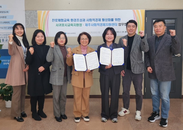[뉴스서울] 서귀포시교육지원청은 24일 제주특별자치도사회적경제지원센터와 서귀포시교육지원청에서 진로체험교육 환경조성과 사회적경제 활성화를 위한 업무협약을 체결했다.