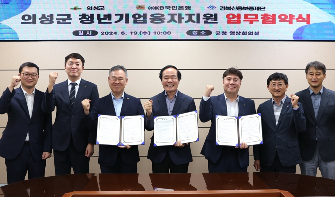 [뉴스서울] 의성군은 청년발전기금을 활용한 ‘청년기업융자지원사업’을 본격적으로 추진하기 위해 19일 KB국민은행 및 경북신용보증재단과 청년기업융자지원사업을 위한 3자간 업무협약을 체결했다고 밝혔다.