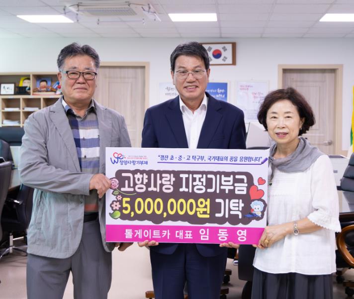 [뉴스서울] 청양군은 임동영 대표(톨케이트카)가 지난 22일 고향사랑e음을 통해 정산 탁구부에 5백만 원을 지정기부하고 29일 군을 방문해 기탁식을 가졌다고 전했다.