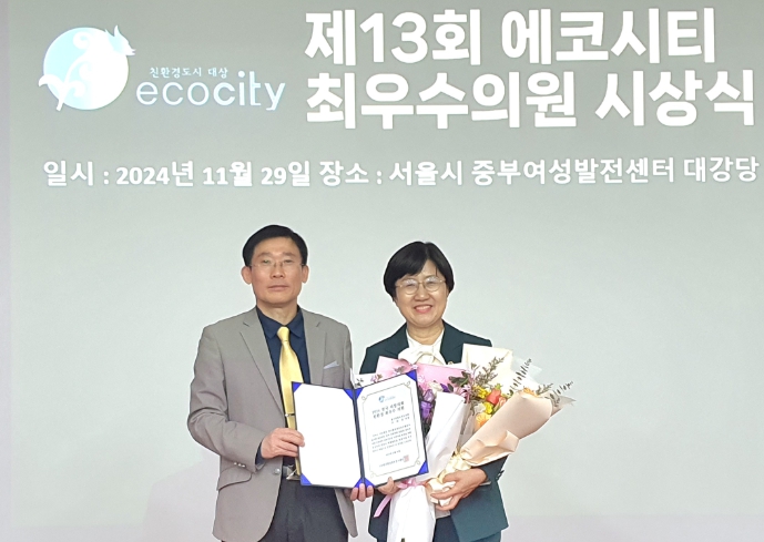 ▲ 2024 전국 지방의회 친환경최우수의원 수상한 고의숙 의원 |