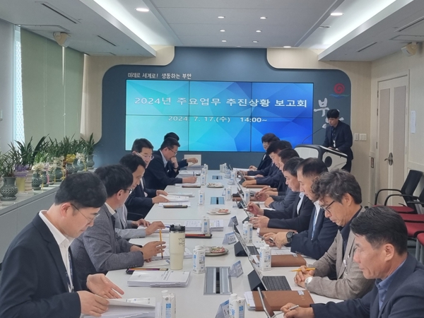 [뉴스서울] 부안군은 지난 17일 25개 부서 국·관·과·소장이 참석한 가운데 2024년도 주요업무 추진상황 보고회를 개최했다.