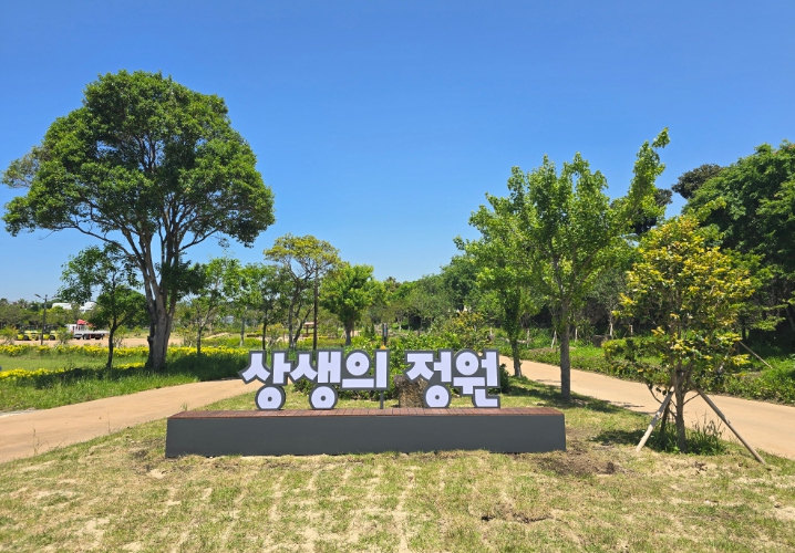 강정 체육공원에는 마을 공동체 회복 지원 및 지역주민들에게 소통의 장소 제공을 위한 강정마을 상생의 정원을 조성하여, 다양한 수목 및 초화류를 식재하고, 벤치 등 편의시설을 지난 5월에 조성 완료했다.