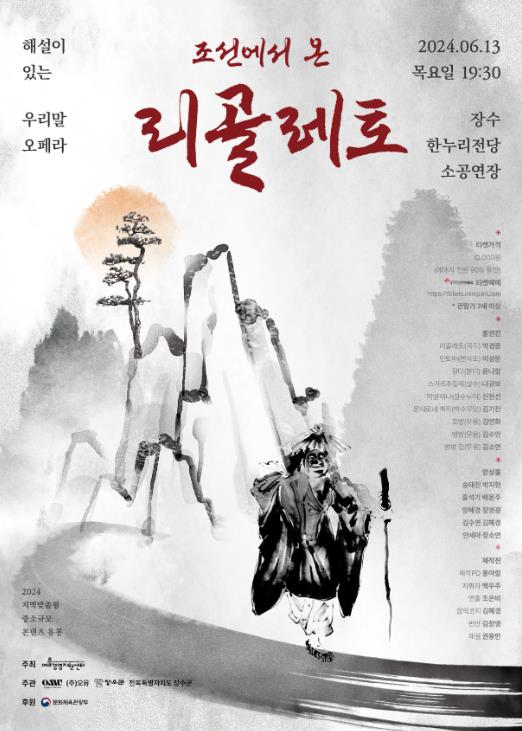 [뉴스서울] 베르디 ‘리골레토’를 우리의 역사와 정서로 색을 입은 특별한 우리말 오페라 ‘조선에서 온 리골레토’가 13일 장수군을 찾는다.