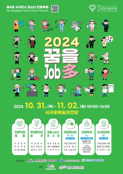 [뉴스서울] 서귀포시교육지원청은 서귀포시와 (재)서귀포시교육발전기금 공동주최로 오는 31일부터 다음 달 2일까지 서귀포예술의전당에서 ‘2024 서귀포시 청소년 진로축제 꿈을Job多’를 개최한다.