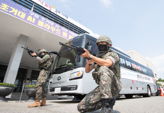 군과 경찰의 경계병력 엄호 아래, 필수요원은 신속히 차량에 탑승하여 대피장소로 이동하였으며, 실전과 같은 상황 속에서 효율적인 행정관리를 위해 완벽하게 임무를 수행했다.