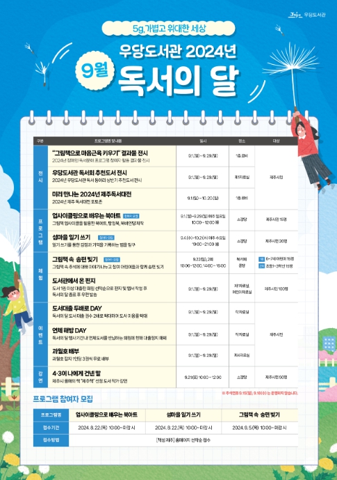 [뉴스서울] 제주시 우당도서관은 9월 독서의 달을 맞아 다채로운 독서문화 행사를 개최한다.