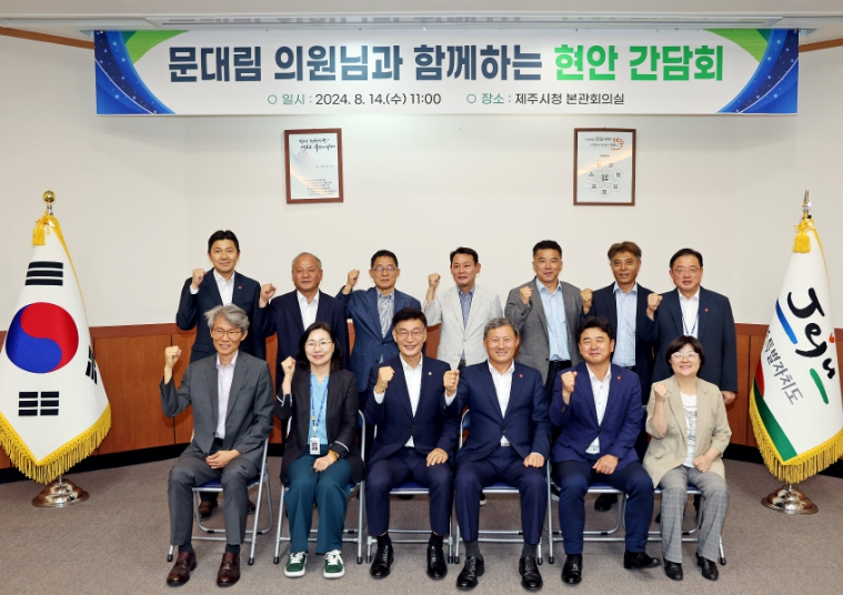 [뉴스서울] 김완근 제주시장은 8월 14일 오전, 제주시청 본관 회의실에서 문대림 국회의원을 초청해 국회의 지원이 필요한 제주시 현안에 대한 간담회를 진행했다.