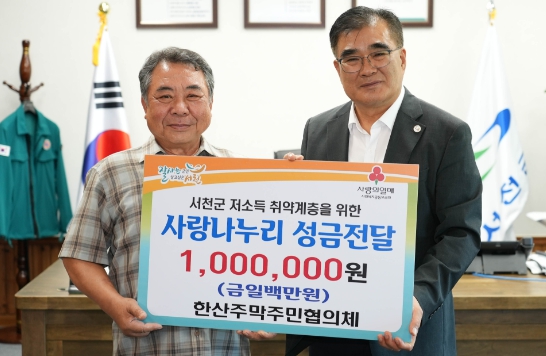 [뉴스서울] 한산주막주민협의체는 지난 24일 서천군을 찾아 저소득 취약계층을 위해 써달라며 성금 1백만원을 기탁했다.