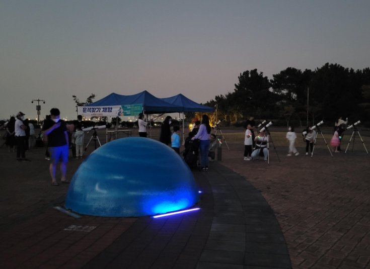 `여름 밤하늘! 우주로의 산책’은 도내‧외 아마추어 천문가들의 다양한 천체망원경을 통해 달, 토성 그리고 여름별자리 등 밤하늘 천체들을 관측하고 달 사진도 촬영할 수 있는 프로그램으로 저녁 7시 30분부터 밤 10시까지 진행된다.