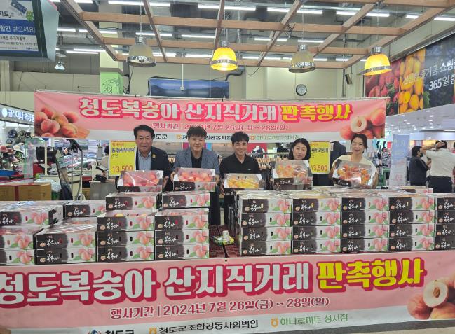 청도 복숭아 산지 직거래 특판행사는 농협 울산유통센터를 시작으로, 남창원농협농산물유통센터에 이어 이번이 3번째로 진행된 것으로, 생산물량 증가로 인해 가격 하락과 출하처 부족의 이중고를 겪는 재배 농가의 어려움을 조금이나마 완화하기 위한 노력의 일환으로 시작됐다.