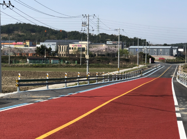 이에, 군은 설계, 공사 등 총사업비 6억원을 투입해 2023년 5월 착공에 들어갔으며, 왕복2차선에 인도를 확보해 지역주민들에게 쾌적한 교통환경제공과 관내 사업자들에게 편리를 제공했다.
