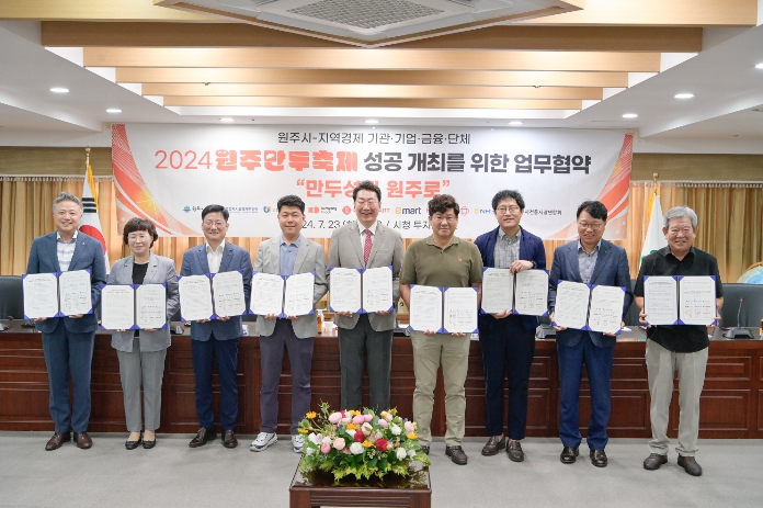 [뉴스서울] 원주시는 이달 23일 오전 9시 시청 7층 투자상담실에서 지역경제 8개 기관·기업·금융·단체와 ‘2024 원주만두축제’ 성공 개최를 위한 업무협약을 체결했다.