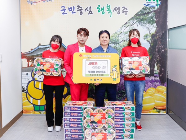 ▲ 트로트 가수 황태자, 성주군에 사랑의 컵라면 기탁 |