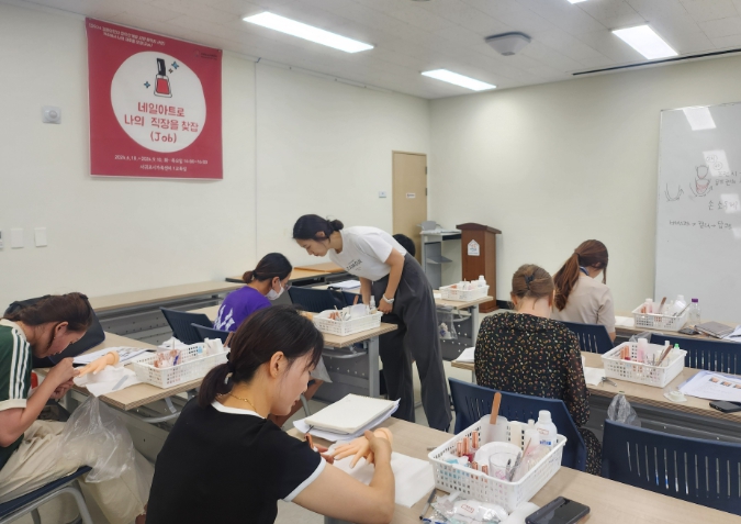 네일아트로 나의 직장을 찾잡(Job)’은 결혼이민자 10명을 대상으로 지난 6월부터 11월까지 총 24회기로 필기교육과 실기교육을 동시에 교육하여 네일아트 국가자격증 취득을 목표로 진행되고 있으며,