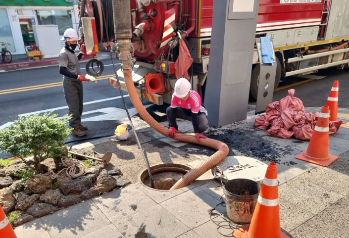 이에 제주시는 지난 8월 1일부터 16일까지 중앙로 현대약국에서 탑동사거리 구간과 중앙로터리에서 동문시장 간 양방향 구간 우수관 1km 준설을 완료했다.