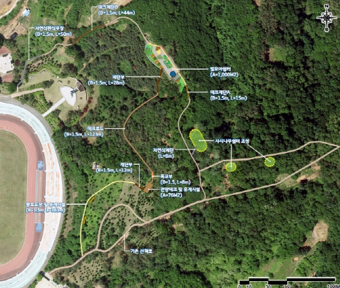 이번 테마숲은 누구나 다 부담 없이 걸을 수 있는 숲길을 조성하고자 급경사지 내 데크로드 설치 및 도심 속 힐링 제공을 위한 빛모아쉼터 등 조성할 계획이다.