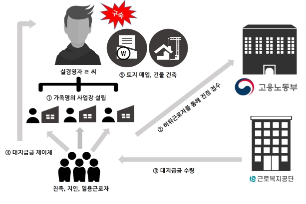 특히, 가족, 지인 등 다수의 허위근로자를 동원하여 대지급금을 받게 하고 일부는 본인이 편취하는 등 죄질이 불량한 사업주 2명은 구속‧기소했다.