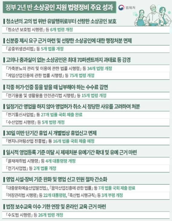 ▲ 정부 2년 반 소상공인 지원 법령정비 주요 성과 |