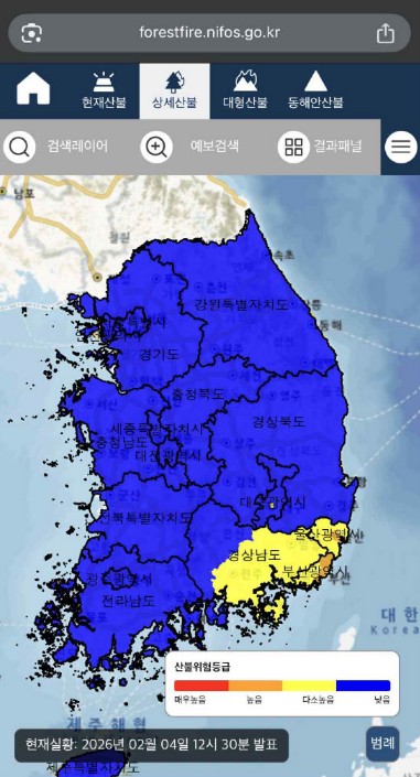 [뉴스서울] 산림청 국립산림과학원은 2월부터 사용자가 자신의 현재 위치를 기반으로 산불위험 정보를 실시간으로 확인할 수 있는 '국가산불위험예보시스템'을 모바일 반응형으로 전환하여 제공하고 있다고 밝혔다.