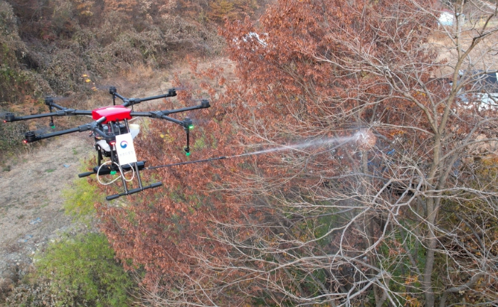 무인기 활용 말벌집 퇴치 기술은 한국농업기술진흥원에 위탁해 진행하는 ‘농업 신기술 산학협력 지원사업’이다. 무인기에 장착된 장치를 원격 조종해 말벌집에 구멍을 뚫고 내부에 방제 약제를 살포해 여왕벌과 유충을 99% 제거하는 방식이다. 한국농수산대학교 홍순중 교수팀과 협력해 전국 8개 도 농업기술원에서 현장 실증 중이다.