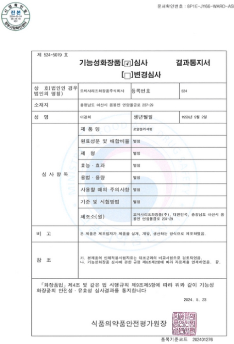 식품의약품안전처는 적정성을 검토한 후 심사를 거쳐 지난 5월 23일 로열젤리 함유 화장품을 피부 주름 개선 기능성화장품에 등록했다.
