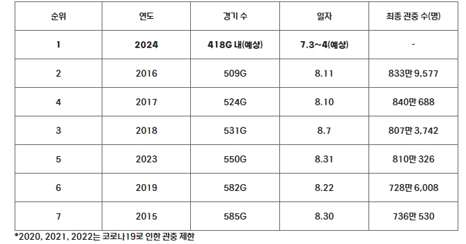 ▲ 10개 구단 체제 이후 600만 관중 돌파 경기 수 순위 |