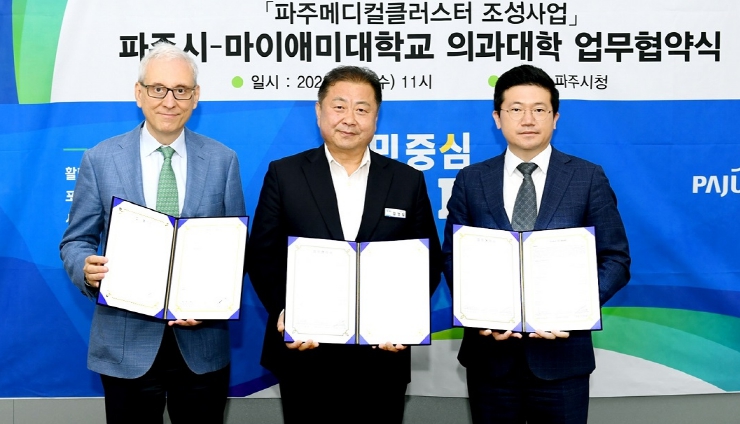 파주시는 마이애미대학교 의과대학교와 지난 22년 7월, ‘파주메디컬 클러스터 내 마이애미대학교 의과대학 연구센터 설립 및 공공연구 협력’을 위한 업무협약을 체결하며 마이애미-데이드 카운티와 인연을 맺었다.
