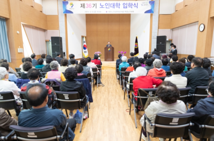 이번 입학식은 김덕현 군수를 비롯해 심상금 군의장 등이 참석한 가운데 입학생 어르신 130여명이 참여했으며 내빈소개, 국민의례, 애국가제창, 노인강령, 축사, 운영안내·임원선출, 폐회 순으로 진행됐다.