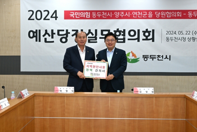 [뉴스서울] 동두천시는 지난 22일 16시 동두천시청에서 박형덕 시장과 김성원 의원을 비롯한 국민의힘 당직자 등이 참석한 가운데 2024년 제1회 예산당정실무협의회를 개최했다.