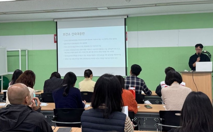 | ▲ 오정보건소 전 직원을 대상으로 재난 상황 대비를 위한 교육을 진행하고 있다. |