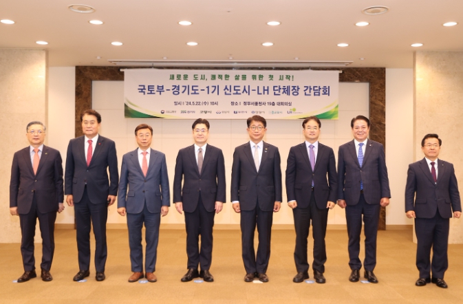 이날 간담회에는 박상우 국토교통부장관, 1기 신도시 시장, 오병권 경기도 행정1부지사, 이한준 LH 사장 등이 참석했다.