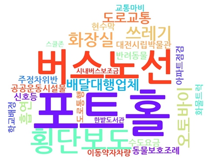 이어 교육‧복지 분야 민원(약 17%), 경제‧과학 분야 민원(약 14%)이 주를 이뤘다. 나머지는 주택‧건축, 문화‧관광, 체육‧건강 관련 민원들이다.
