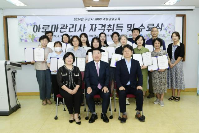 [뉴스서울] 구리시는 삼육대학교 평생교육원에서 지난 8월 27일 ‘구리시 5060 역량강화교육 질환별채식요리교육강사’수료식에 이어, 8월 30일 ‘아로마관리사’수료식을 가졌다.