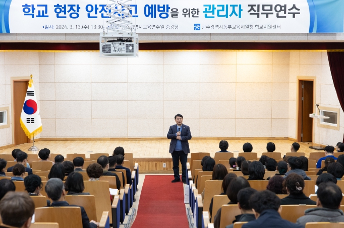 [뉴스서울] 광주광역시동부교육지원청이 13일 광주교육연수원에서 학교장과 행정실장 190명 대상 학교 현장 안전사고 예방을 위한 관리자 직무연수를 개최했다.